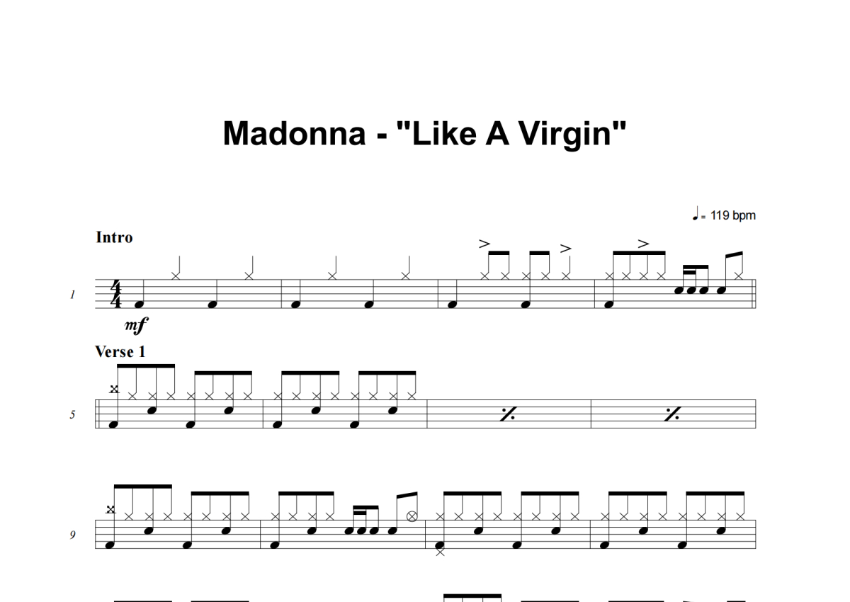 Madonna《Like A Virgin》鼓谱 - 架子鼓谱