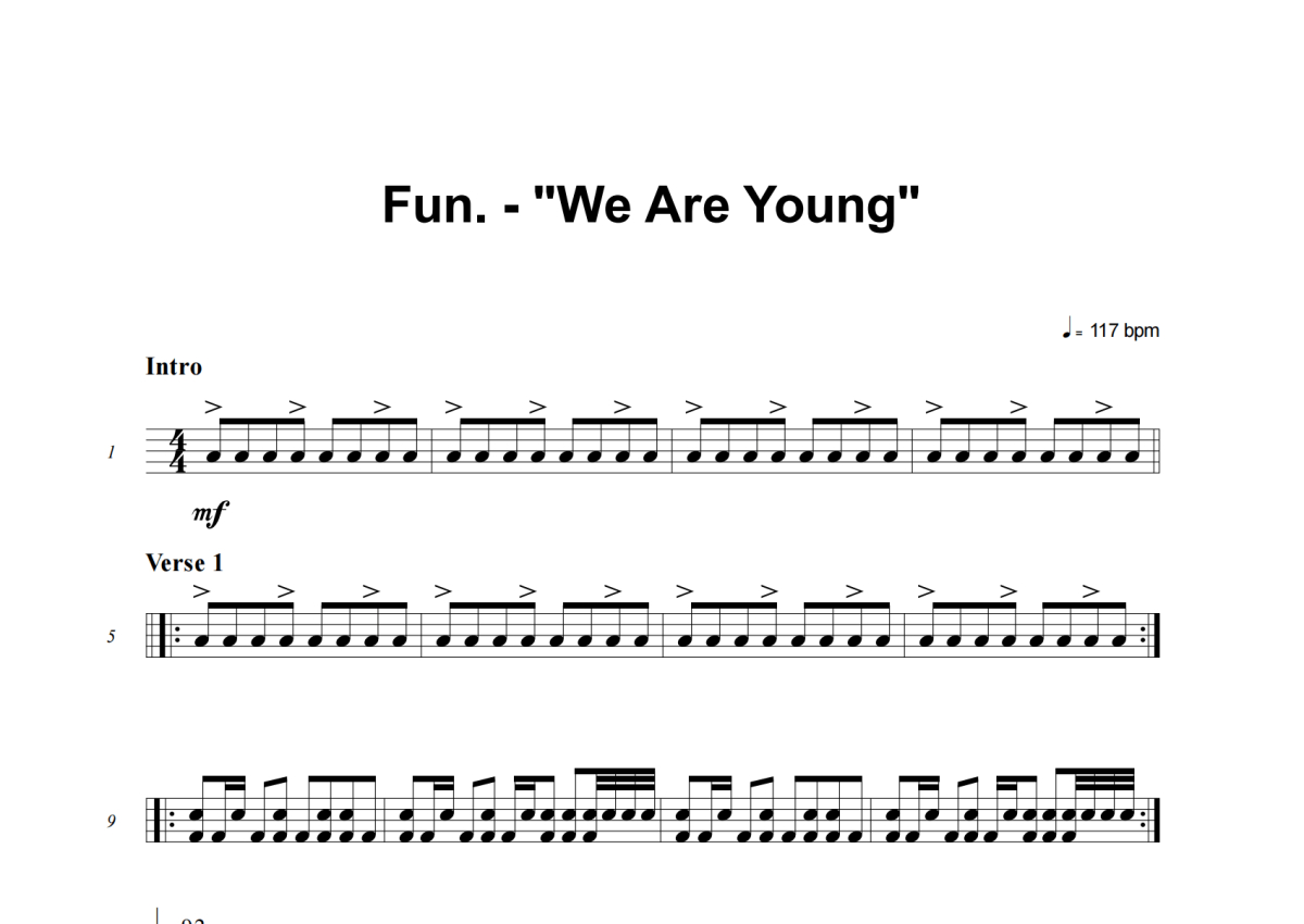 Fun.《We Are Young》鼓谱 - 架子鼓谱