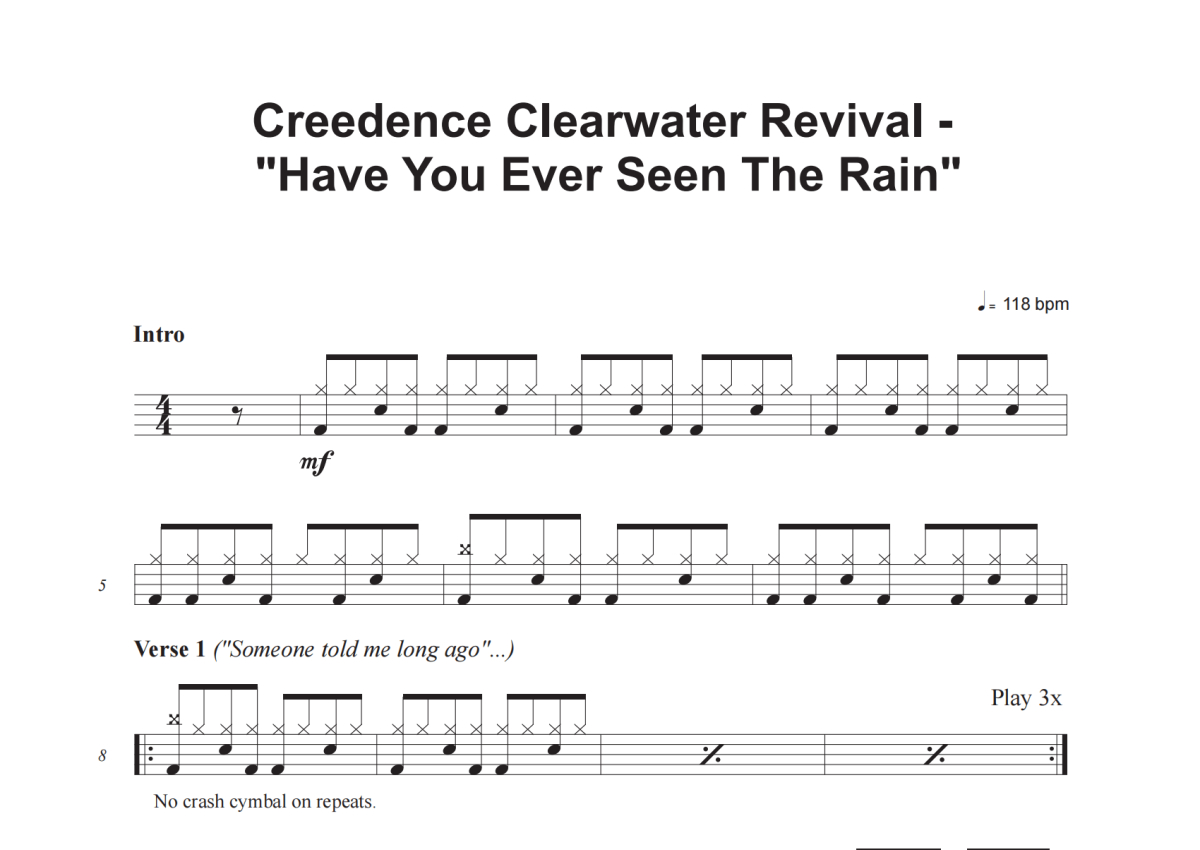 Creedence Clearwater Revival《have you ever seen the rain》鼓谱 - 架子鼓谱