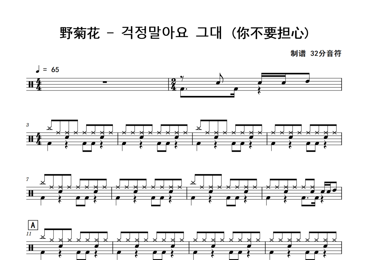 野菊花《걱정말아요_그대_(你不要担心)》鼓谱 - 架子鼓谱