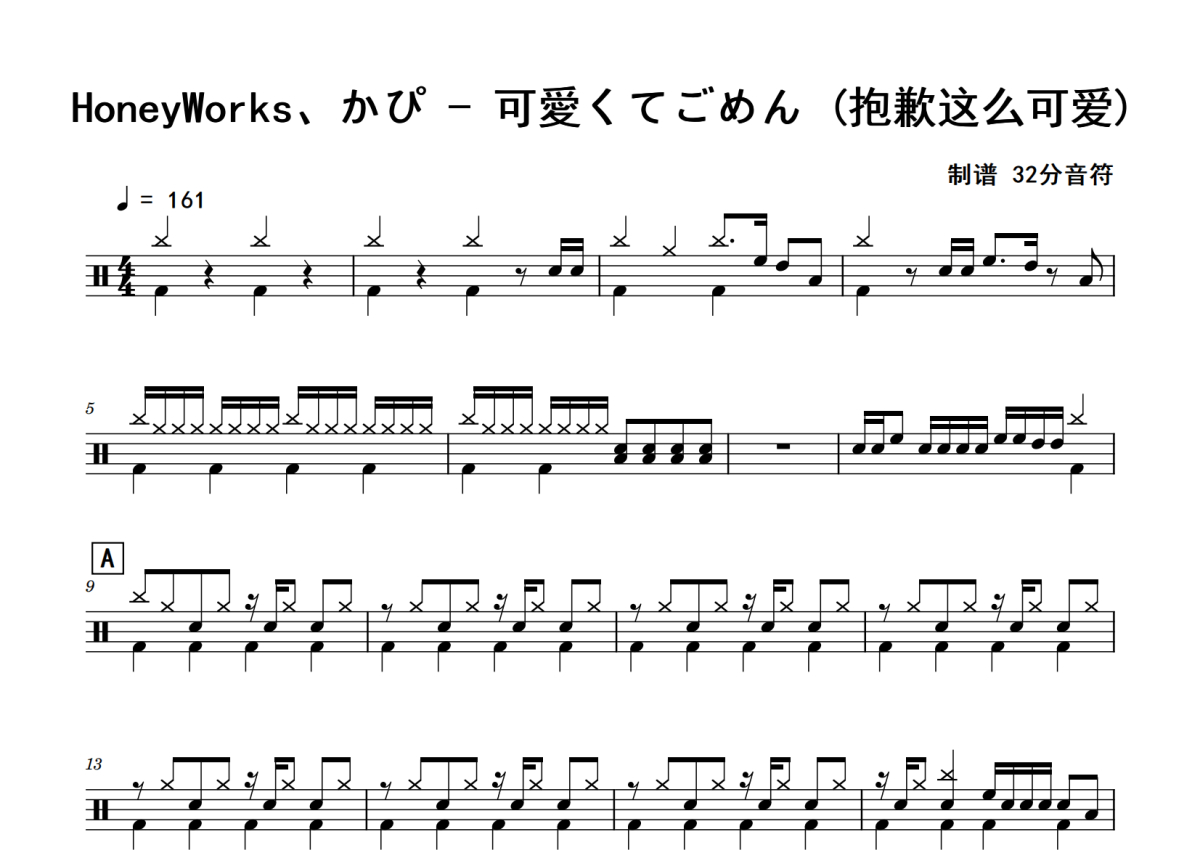 HoneyWorks、かぴ《可愛くてごめん_(抱歉这么可爱)》鼓谱 - 架子鼓谱