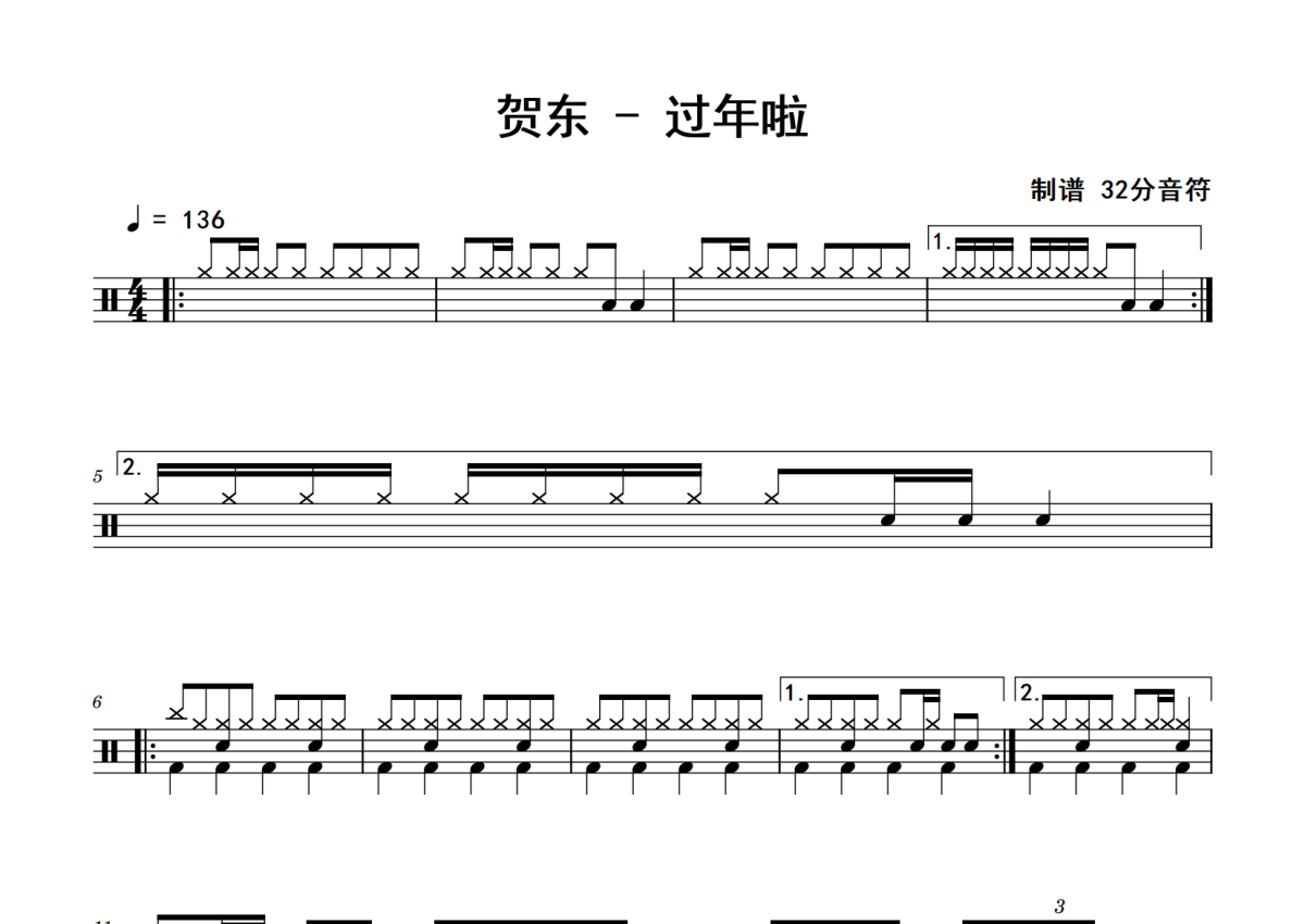 贺东《过年啦》鼓谱 - 架子鼓谱