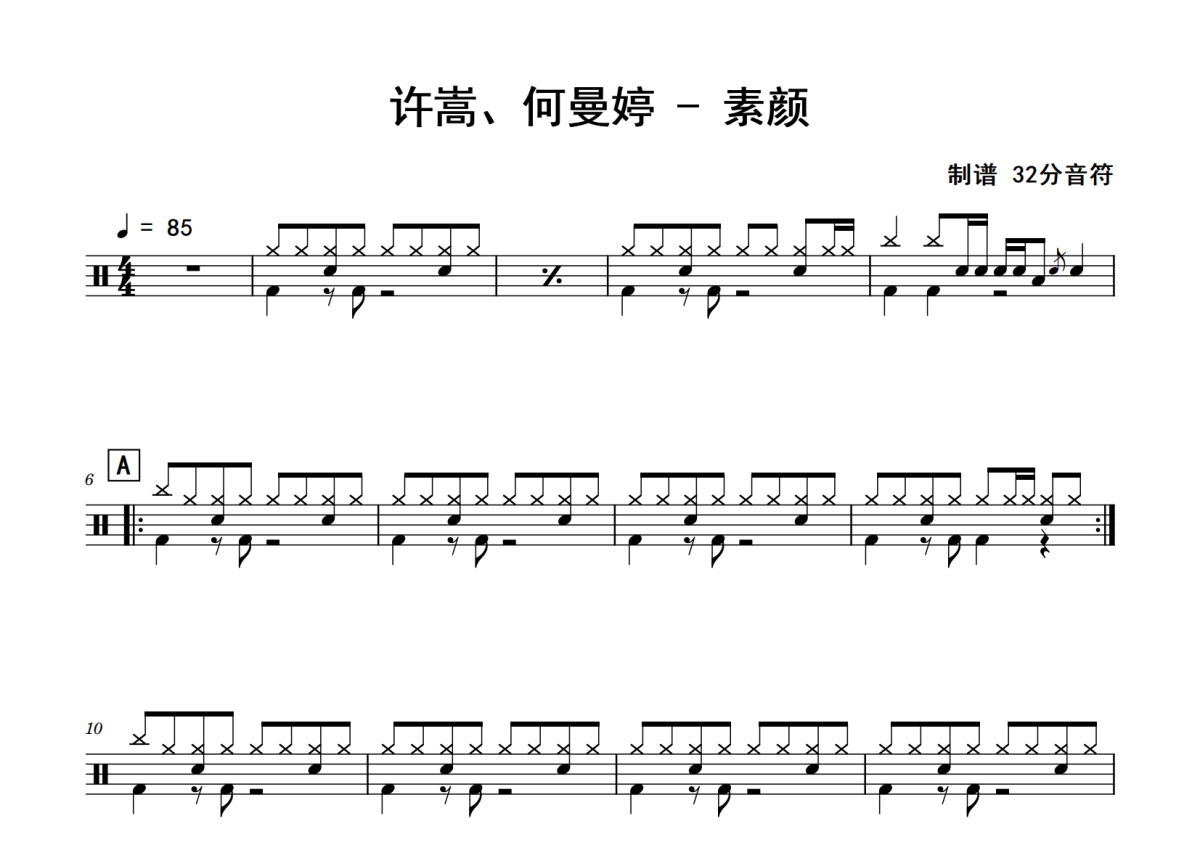 许嵩《素颜》鼓谱 - 架子鼓谱