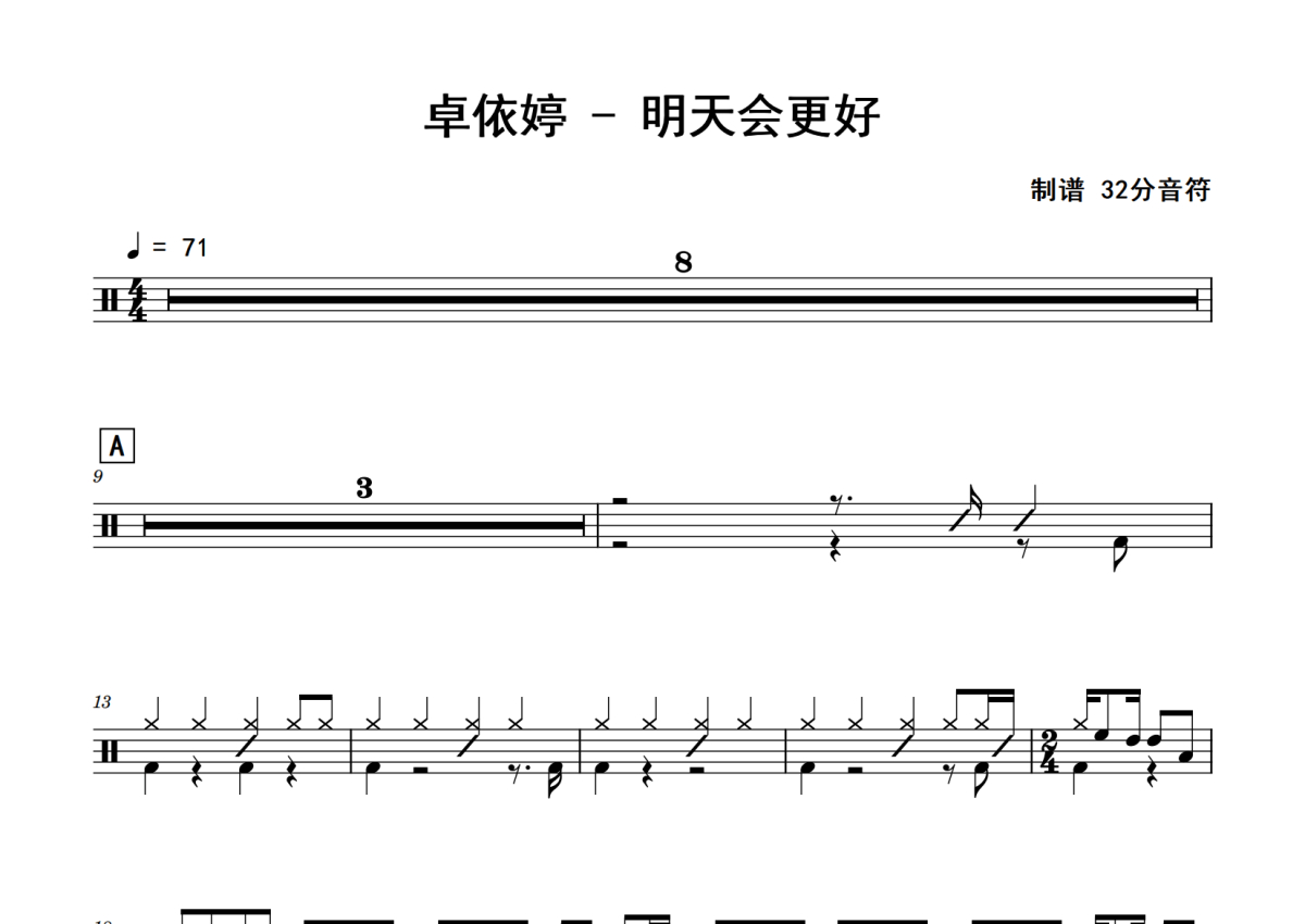 卓依婷《明天会更好》鼓谱 - 架子鼓谱
