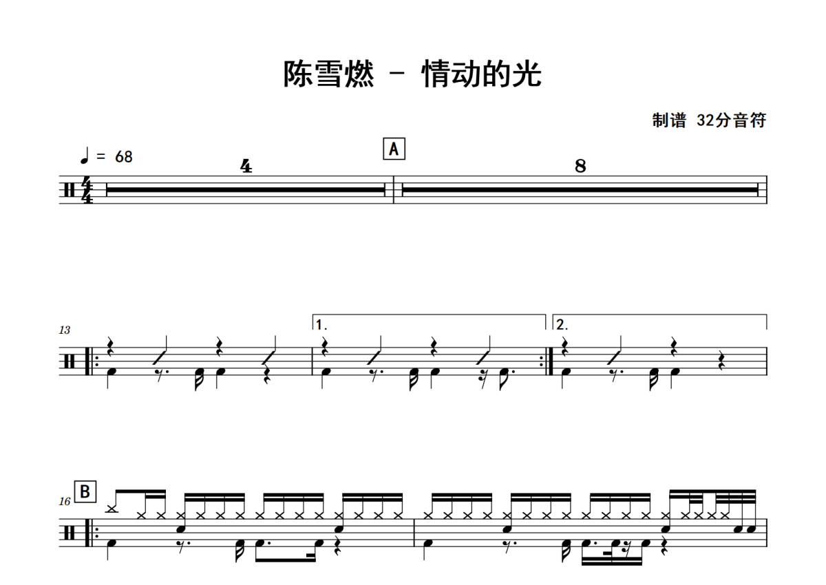 陈雪燃《情动的光》鼓谱 - 架子鼓谱