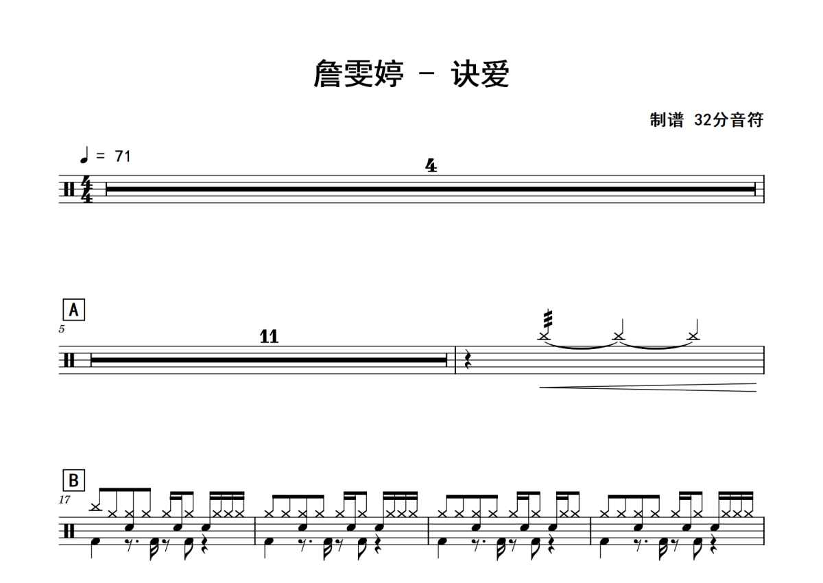 詹雯婷《诀爱》鼓谱 - 架子鼓谱