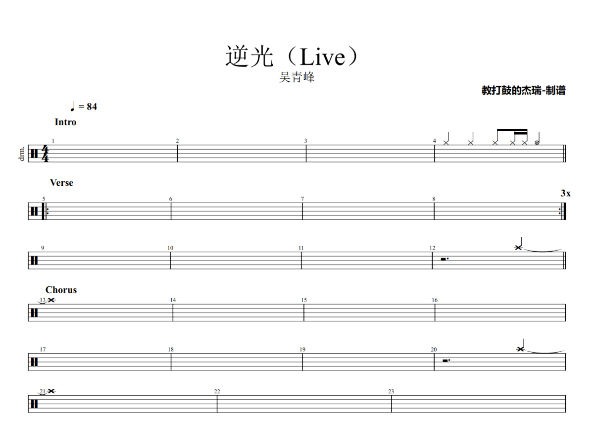 吴青峰《逆光》鼓谱 - 架子鼓谱 - 蒙面唱将猜猜猜第三季 第2期