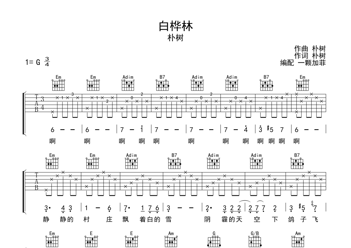 朴树《白桦林》吉他谱 - G调弹唱六线谱