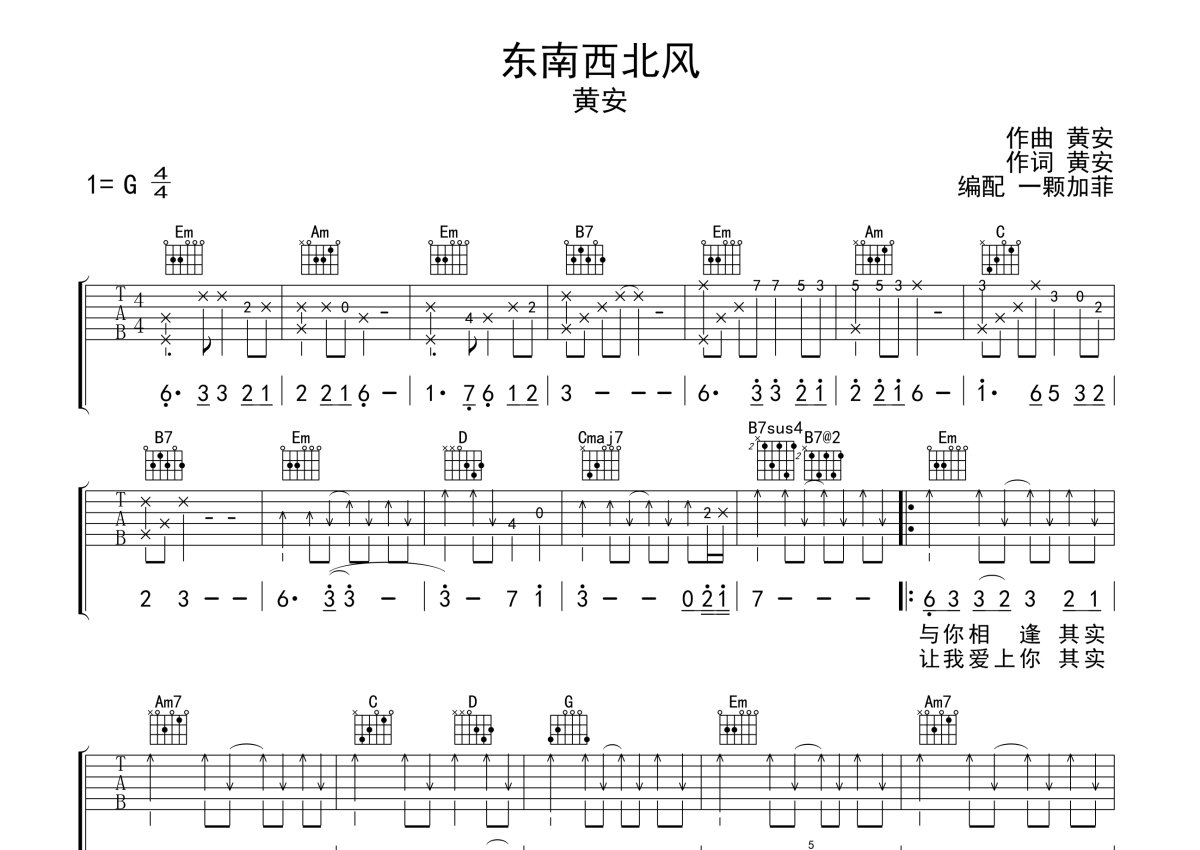 黄安《东南西北风》吉他谱 - G调弹唱六线谱