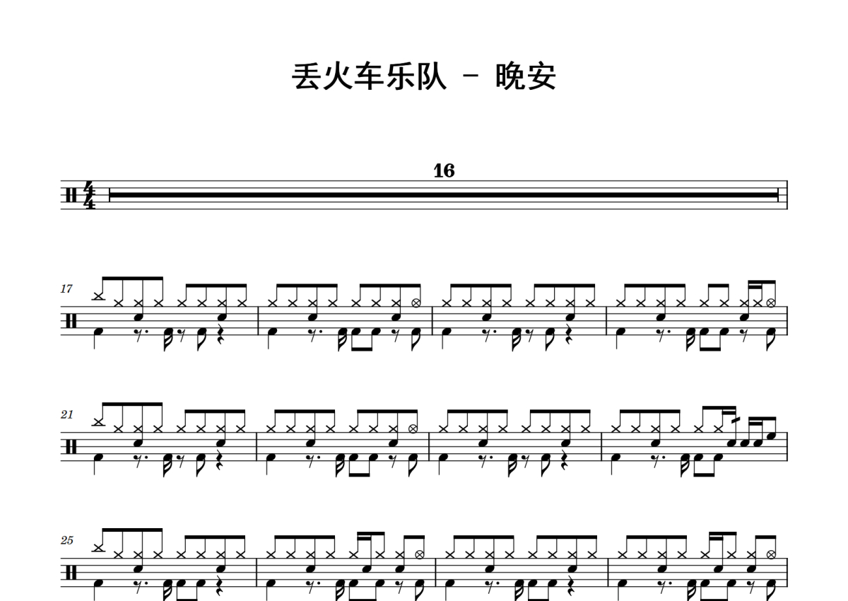 丢火车乐队《晚安》鼓谱 - 架子鼓谱