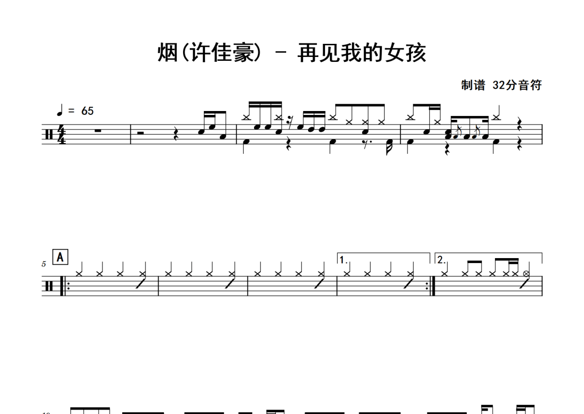许佳豪《再见我的女孩》鼓谱 - 架子鼓谱