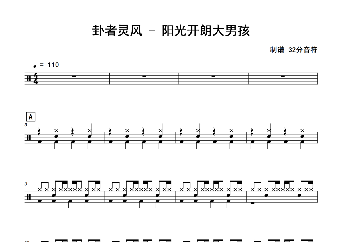 卦者灵风《阳光开朗大男孩》鼓谱 - 架子鼓谱 - 初级