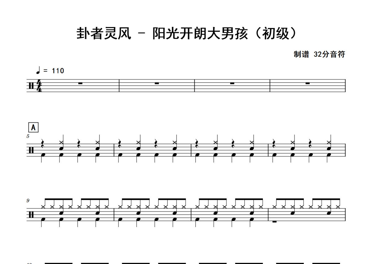 卦者灵风《阳光开朗大男孩》鼓谱 - 架子鼓谱 - 初级