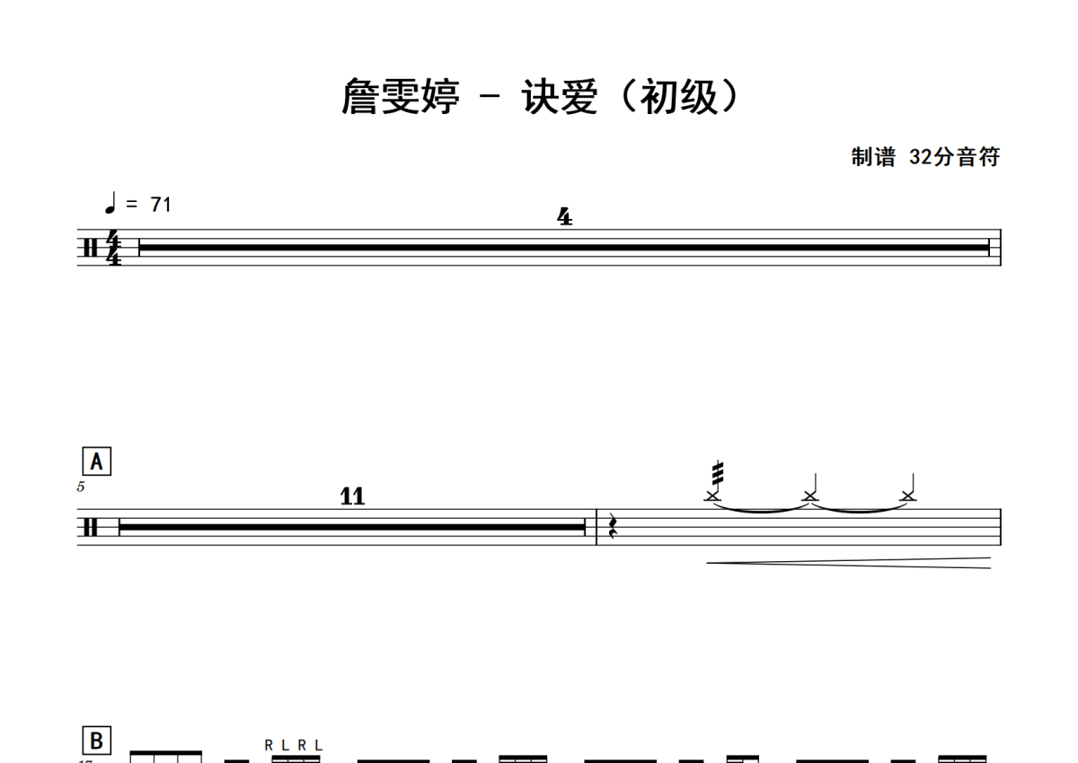 詹雯婷《诀爱》鼓谱 - 架子鼓谱 - 初级