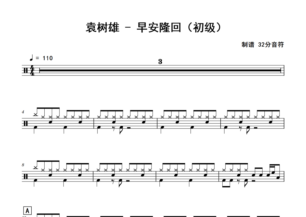 袁树雄《早安隆回》鼓谱 - 架子鼓谱 - 初级