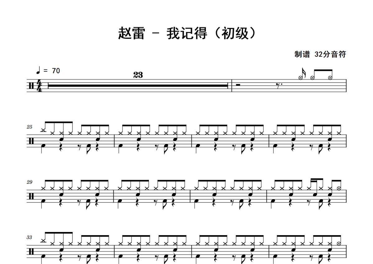 赵雷《我记得》鼓谱 - 架子鼓谱 - 初级