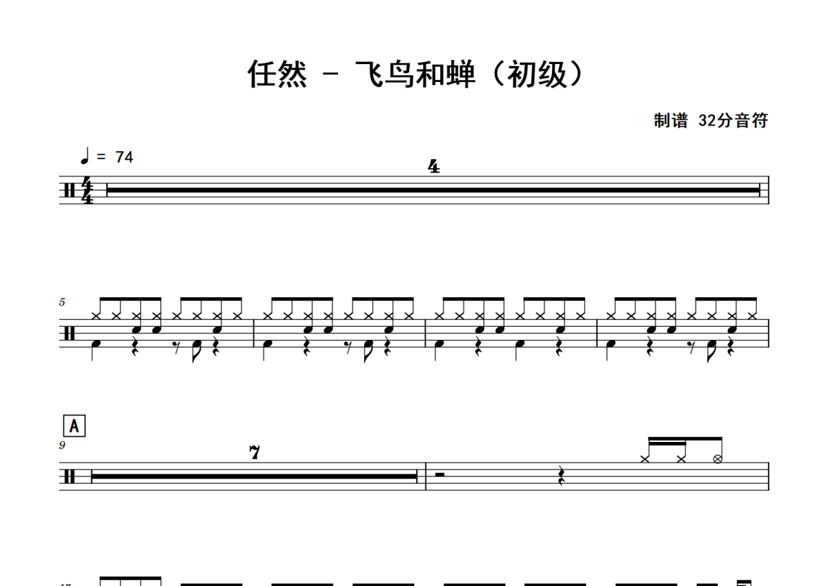 任然《飞鸟和蝉》鼓谱 - 架子鼓谱 - 初级