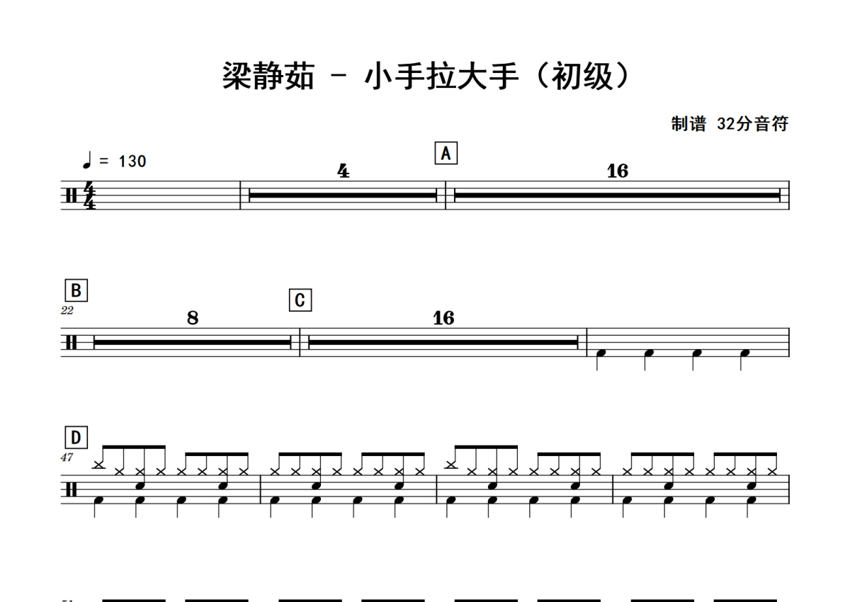 梁静茹《小手拉大手》鼓谱 - 架子鼓谱 - 初级