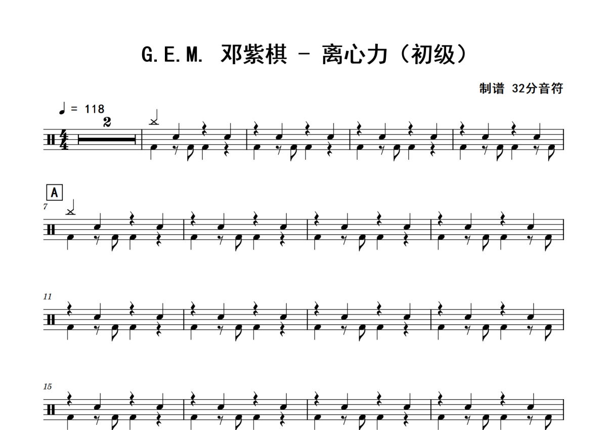 G.E.M._邓紫棋《离心力》鼓谱 - 架子鼓谱 - 初级