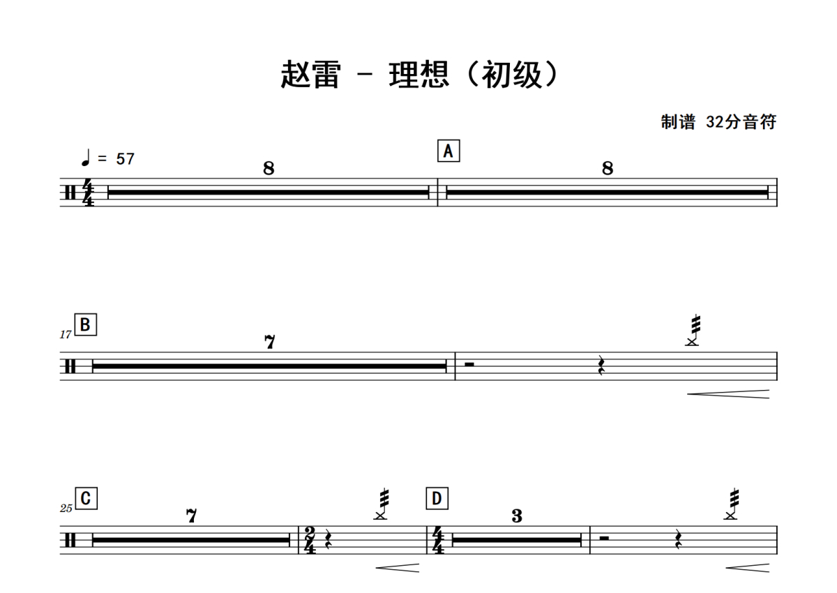 赵雷《理想》鼓谱 - 架子鼓谱 - 初级