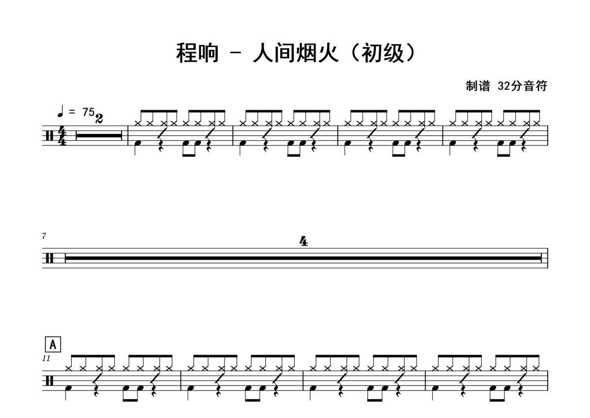 程响《人间烟火》鼓谱 - 架子鼓谱 - 初级