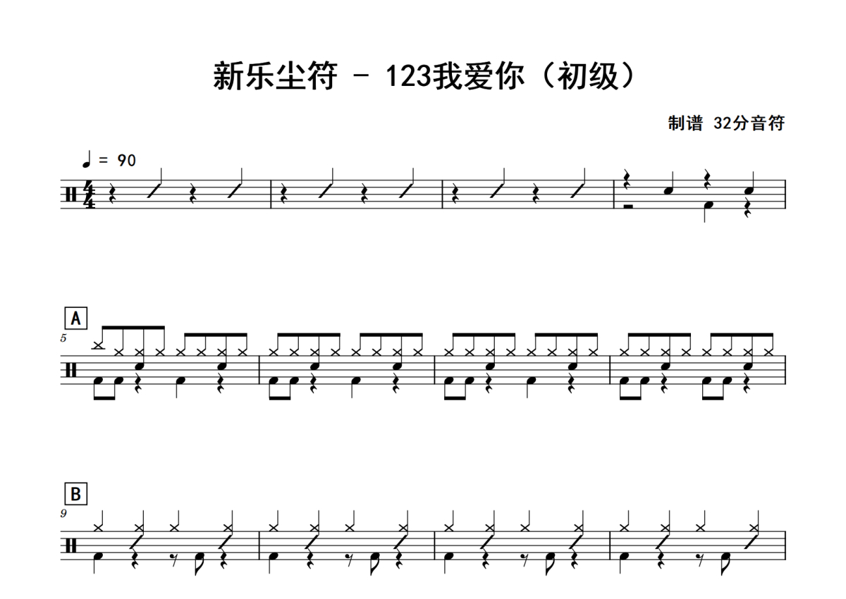 新乐尘符《123我爱你》鼓谱 - 架子鼓谱 - 初级