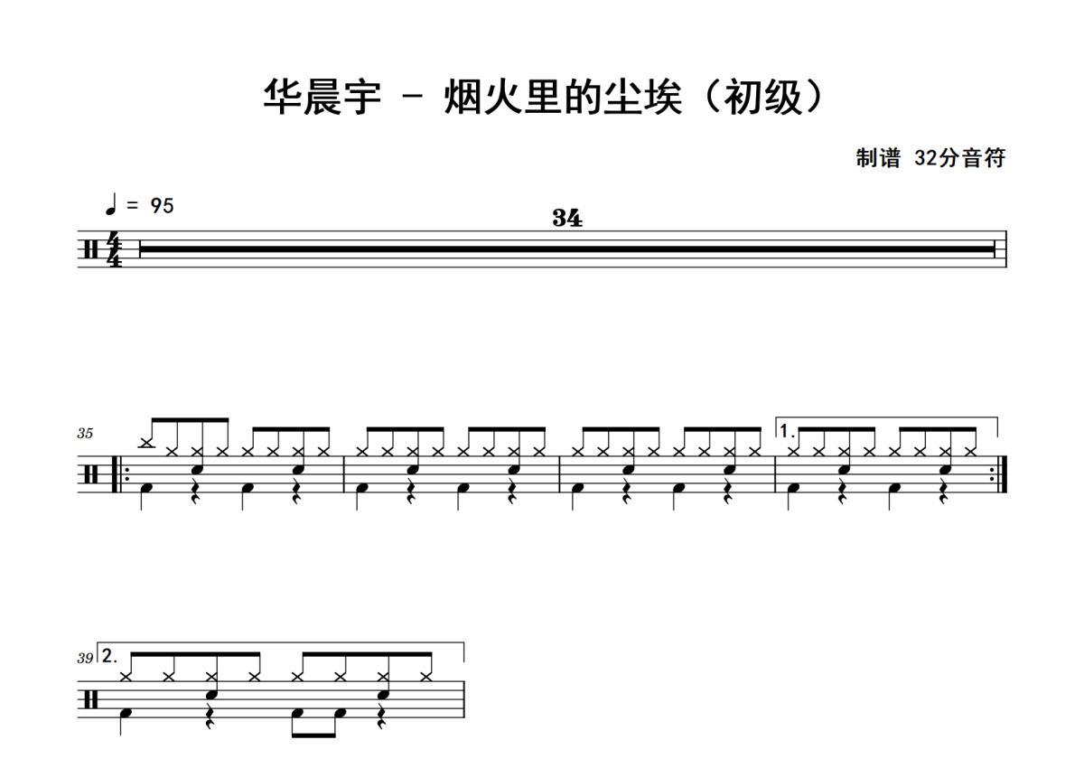 华晨宇《烟火里的尘埃》鼓谱 - 架子鼓谱 - 初级