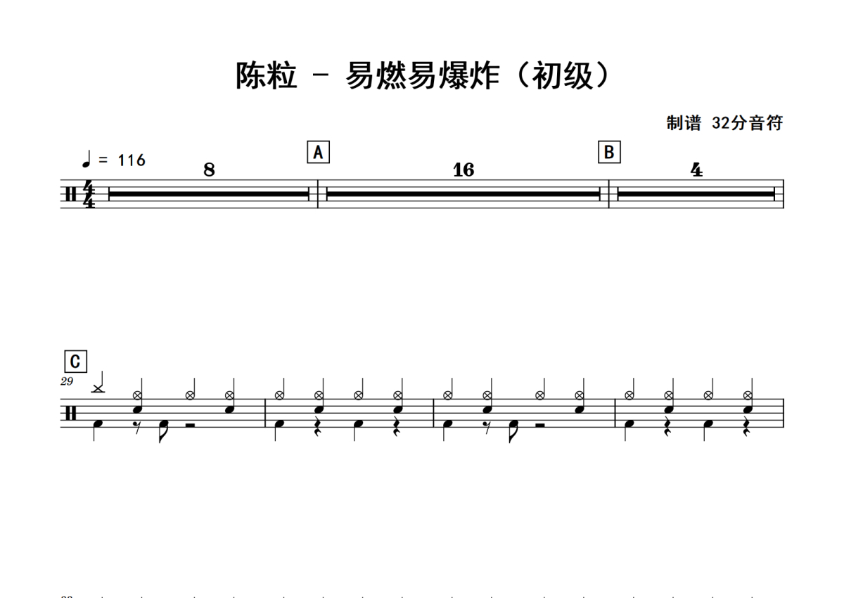 陈粒《易燃易爆炸》鼓谱 - 架子鼓谱 - 初级