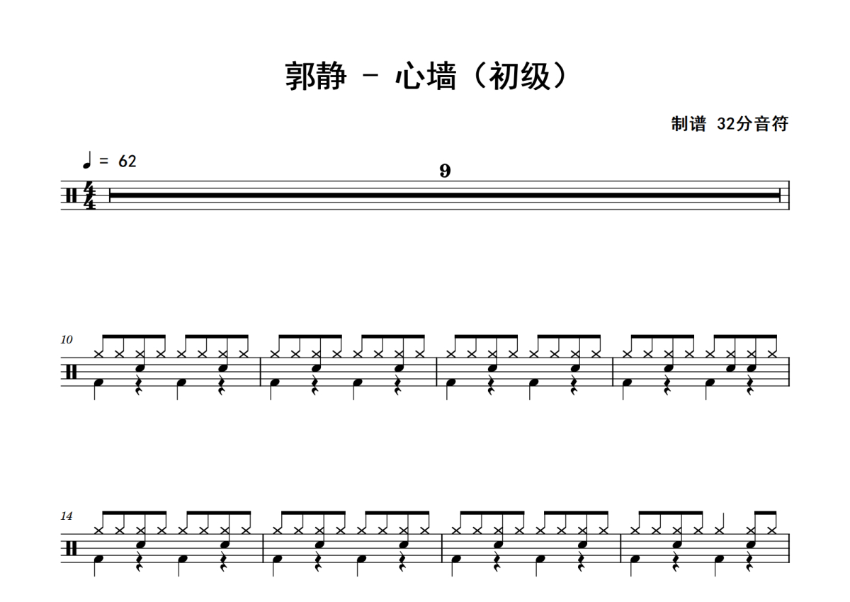 郭静《心墙》鼓谱 - 架子鼓谱 - 初级