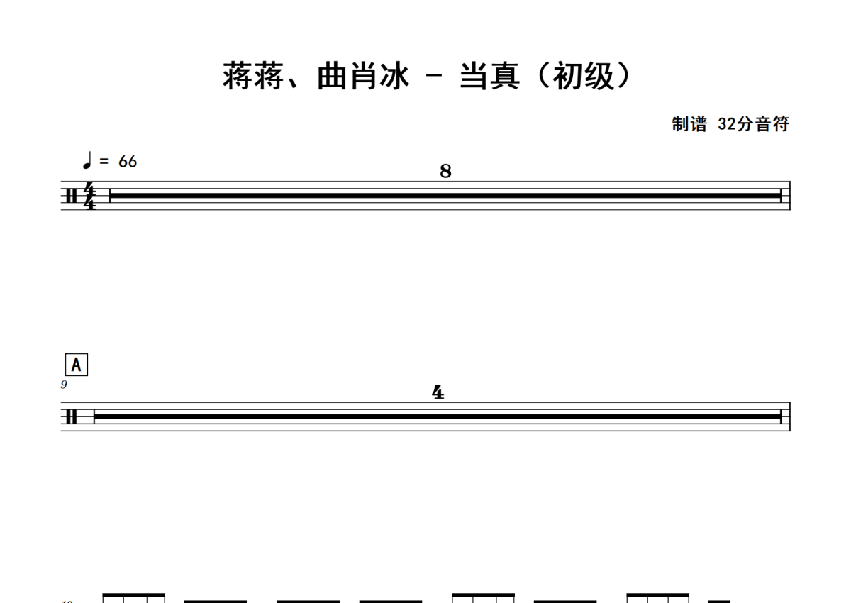 蒋蒋、曲肖冰《当真》鼓谱 - 架子鼓谱 - 初级