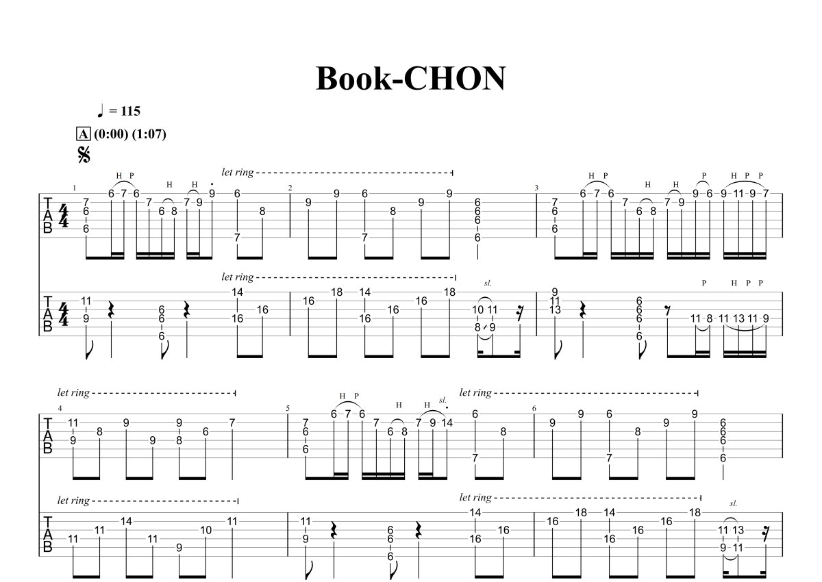 《Book》是CHON演唱的一首歌曲,石头音乐原版记谱,拍号为4/4拍,歌曲速度为每分钟115拍,歌曲原调为Gb调,这份电吉他谱共有四张高清图谱,图谱由 @石头音乐 编配上传,图谱使用六线谱编配,曲谱配备了相关的音频提供试听,使用这份Book电吉他谱,可以让你更加方便地掌握这首歌曲的演奏技巧,快来尝试吧。