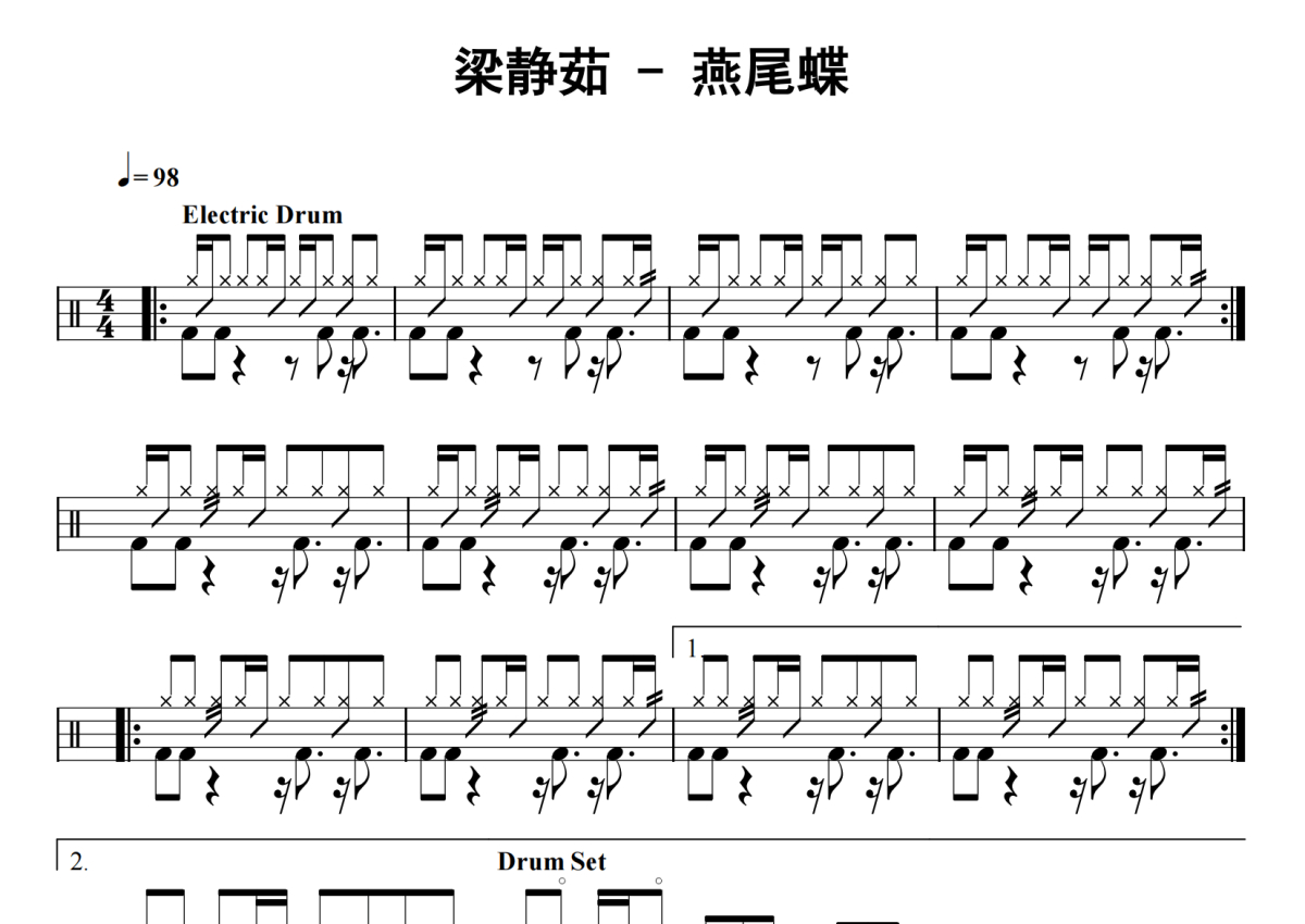 梁静茹《燕尾蝶》鼓谱 - 架子鼓谱