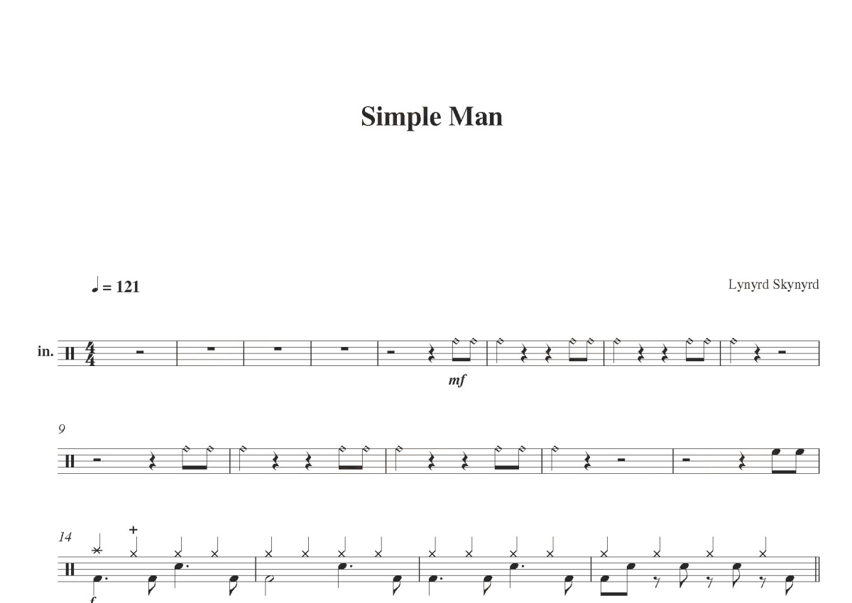 Lynyrd Skynyrd《simple man》鼓谱 - 架子鼓谱