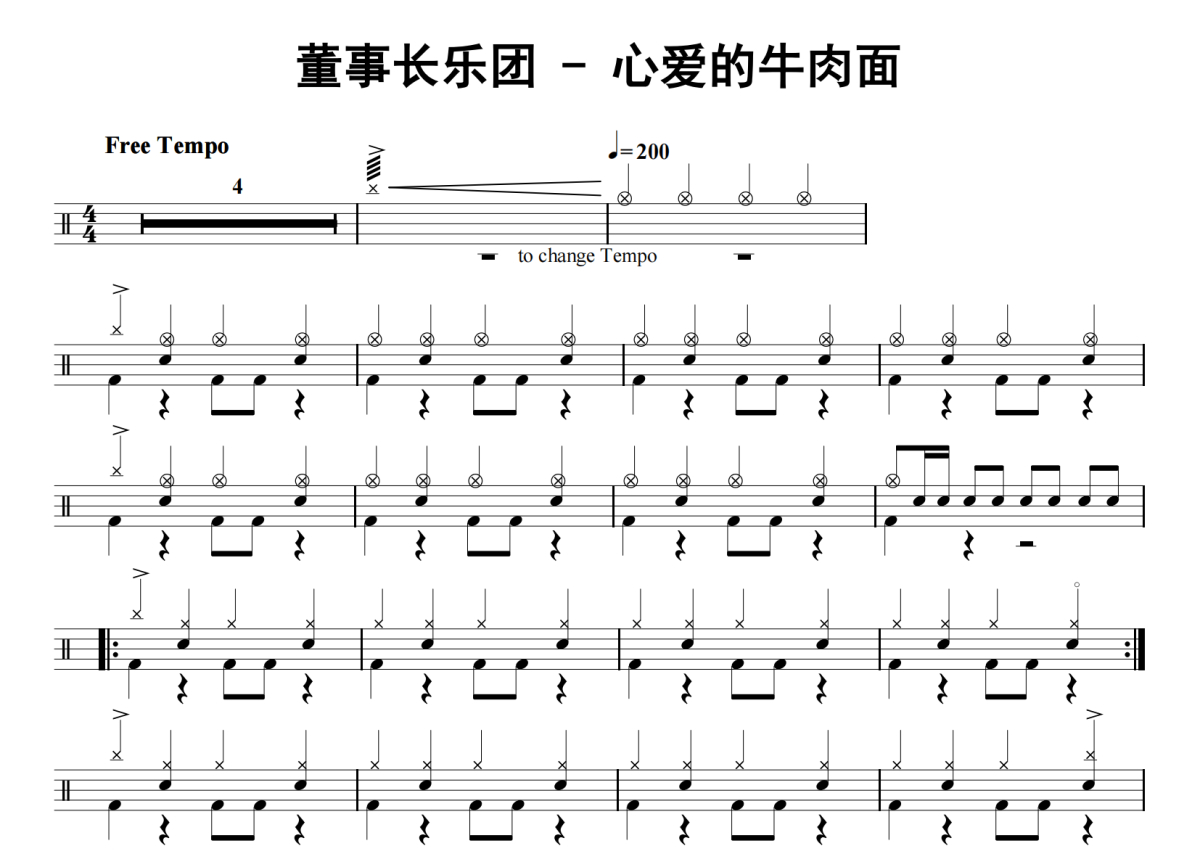 董事长乐团《心爱的牛肉面》鼓谱 - 架子鼓谱