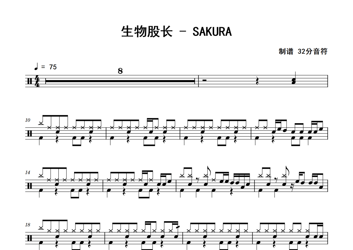 生物股长《SAKURA》鼓谱 - 架子鼓谱