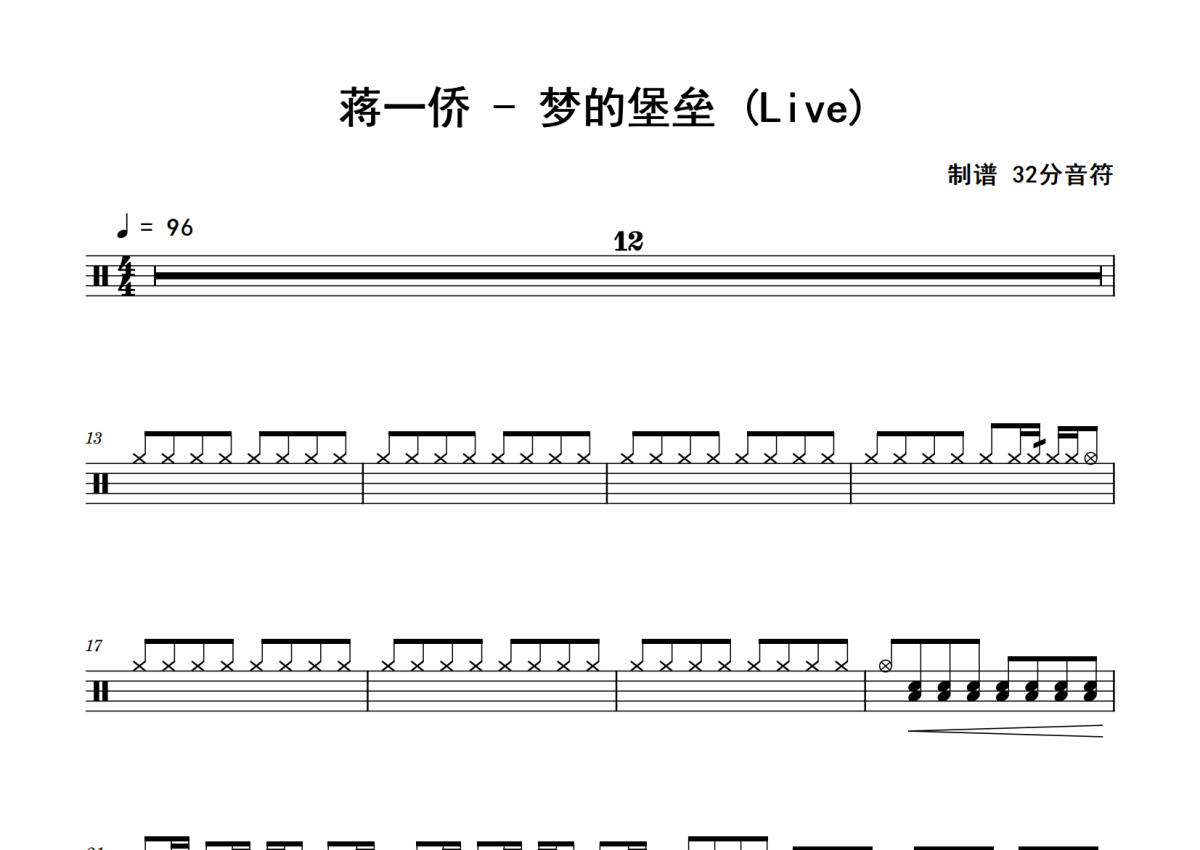 蒋一侨《梦的堡垒》鼓谱 - 架子鼓谱 - Live