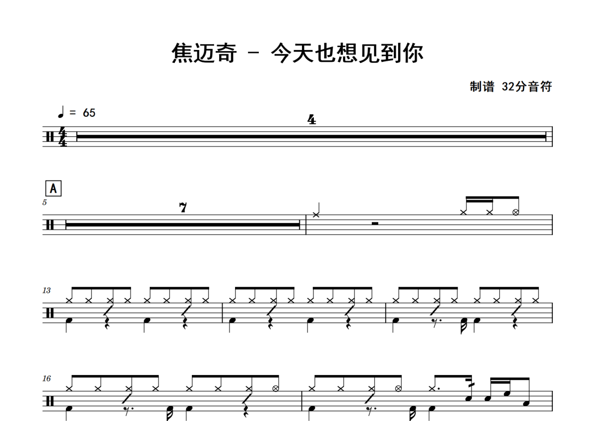 焦迈奇《今天也想见到你》鼓谱 - 架子鼓谱