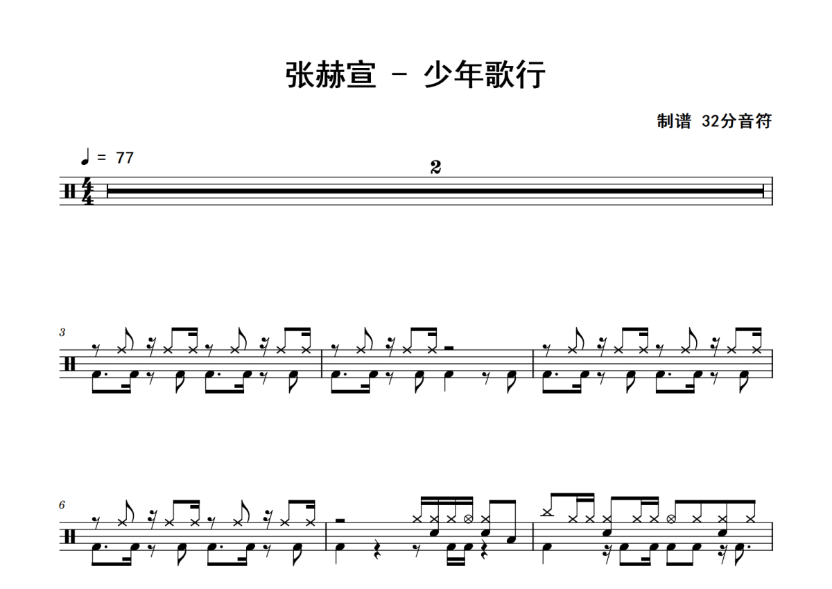 张赫宣《少年歌行》鼓谱 - 架子鼓谱