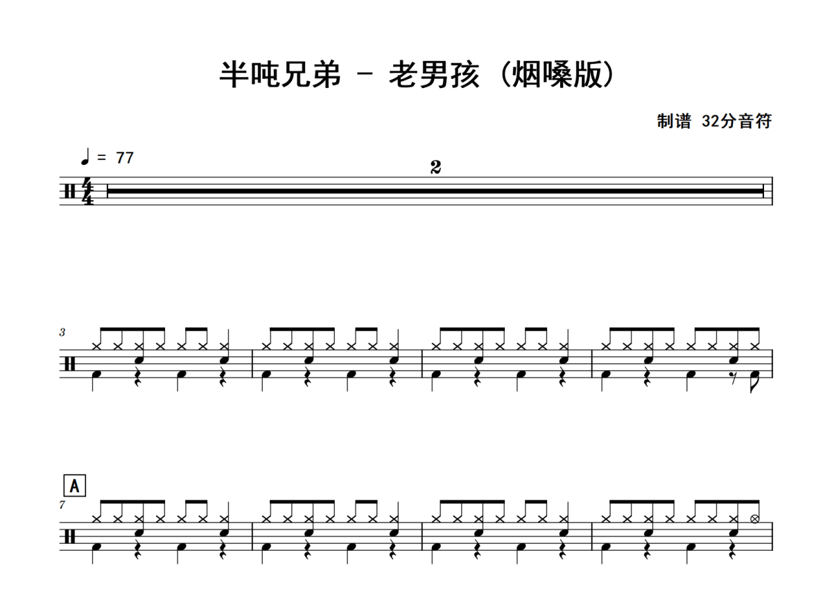 半吨兄弟《老男孩》鼓谱 - 架子鼓谱 - 烟嗓版