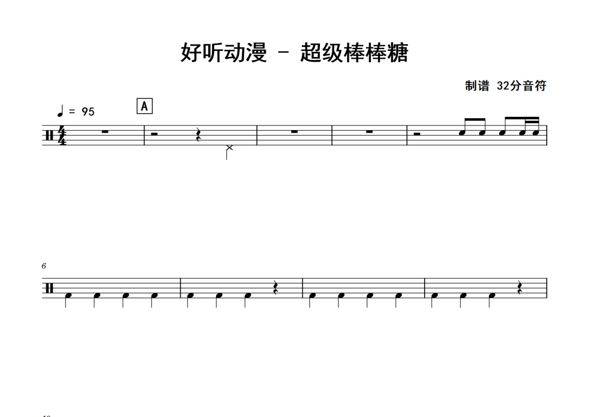 好听动漫《超级棒棒糖》鼓谱 - 架子鼓谱