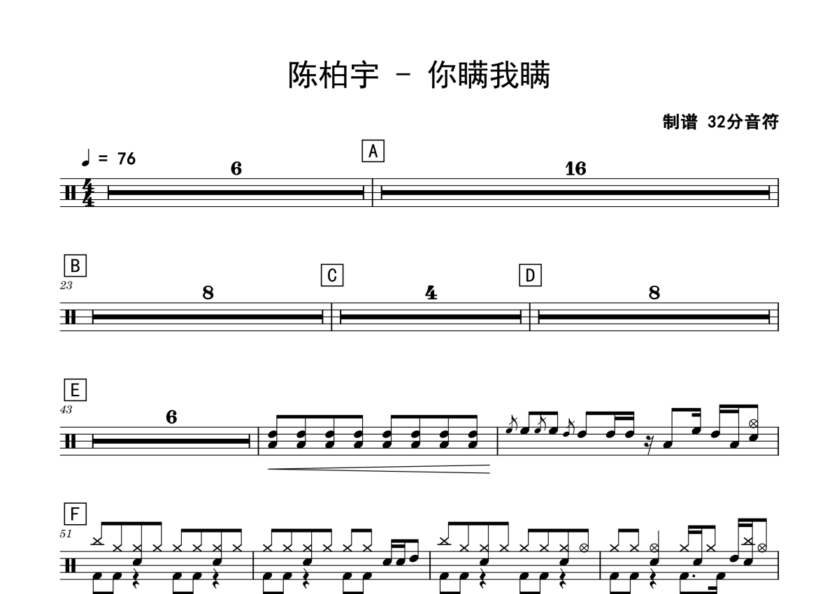 陈柏宇《你瞒我瞒》鼓谱 - 架子鼓谱