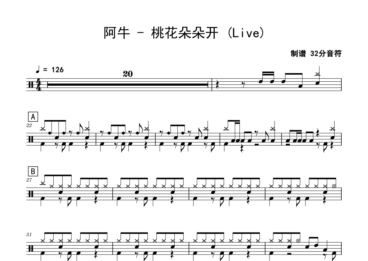 阿牛《桃花朵朵开》鼓谱 - 架子鼓谱 - Live