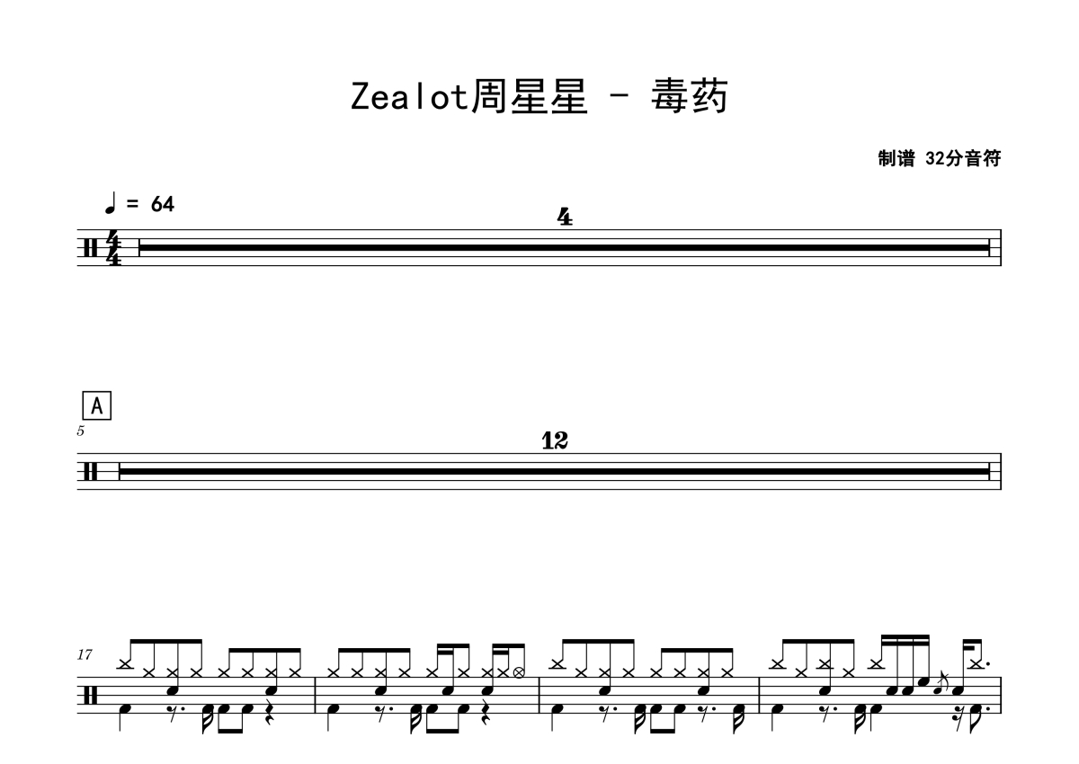Zealot周星星《毒药》鼓谱 - 架子鼓谱
