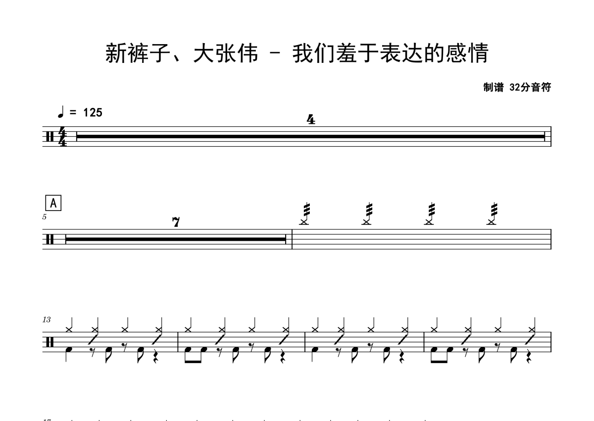 新裤子/大张伟《我们羞于表达的感情》鼓谱 - 架子鼓谱