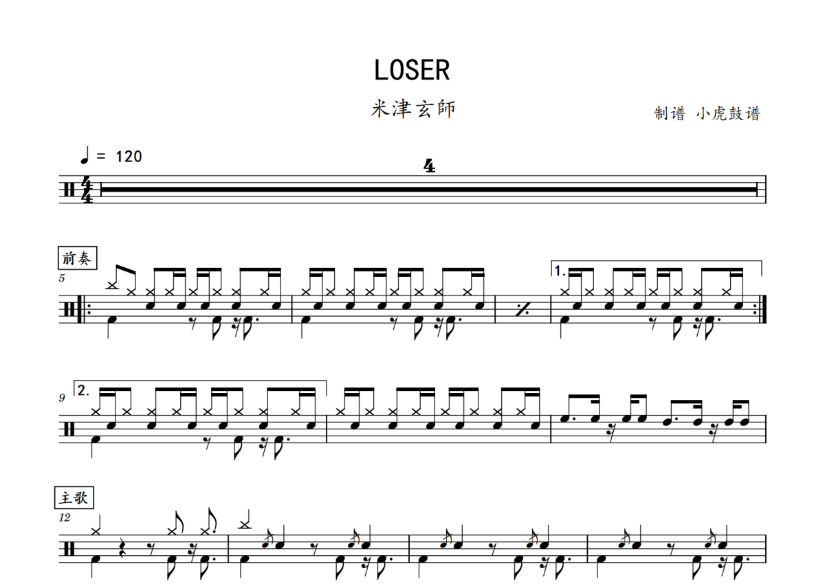 米津玄师《LOSER》鼓谱 - 架子鼓谱