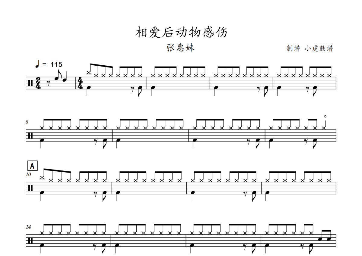 张惠妹《相爱后动物感伤》鼓谱 - 架子鼓谱
