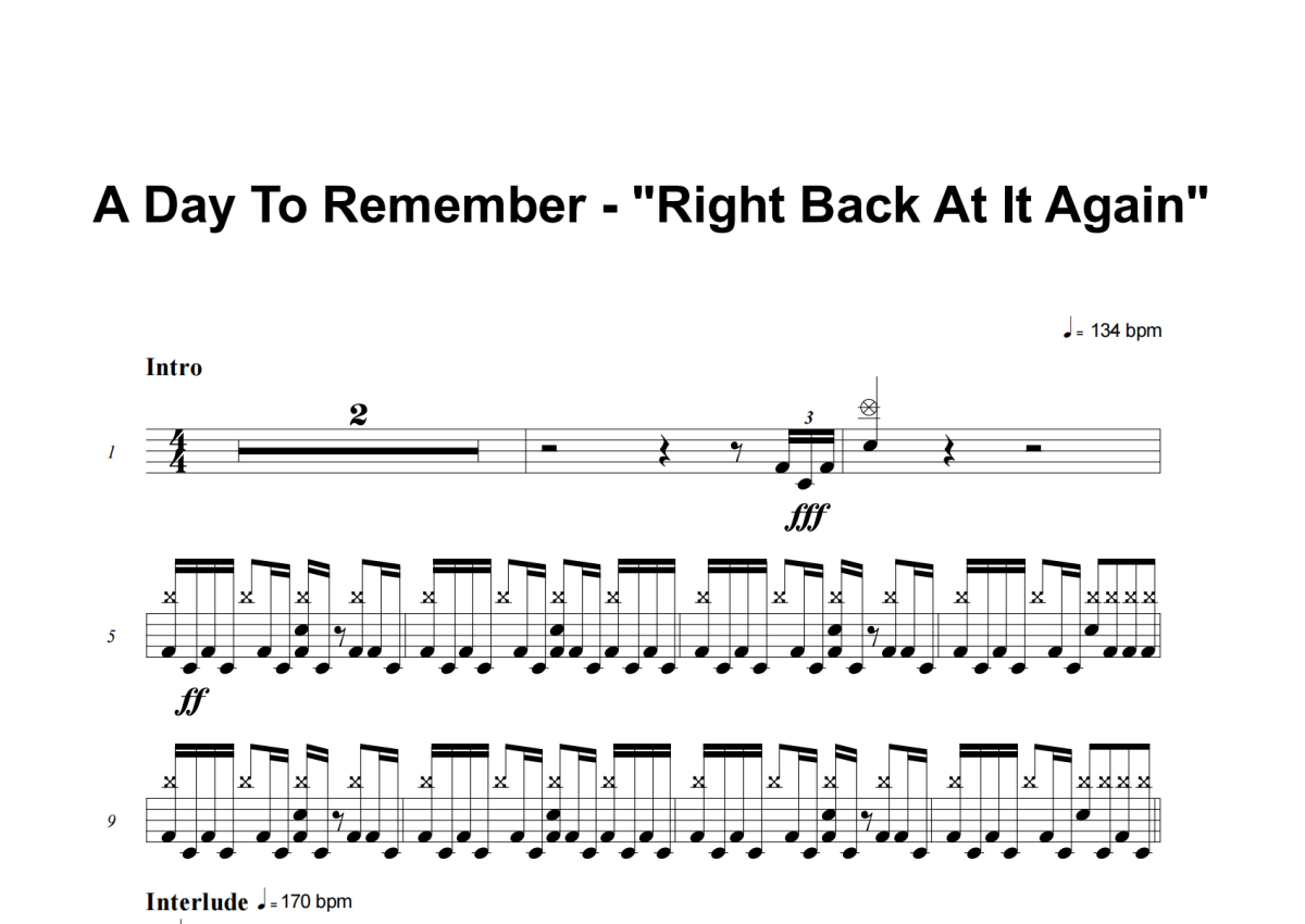 A Day To Remember《Right Back At It Again》鼓谱 - 架子鼓谱