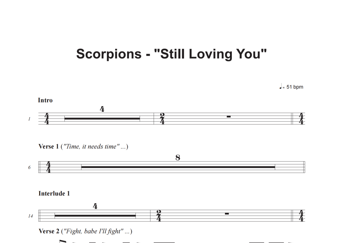 Scorpions《Still Loving You》鼓谱 - 架子鼓谱