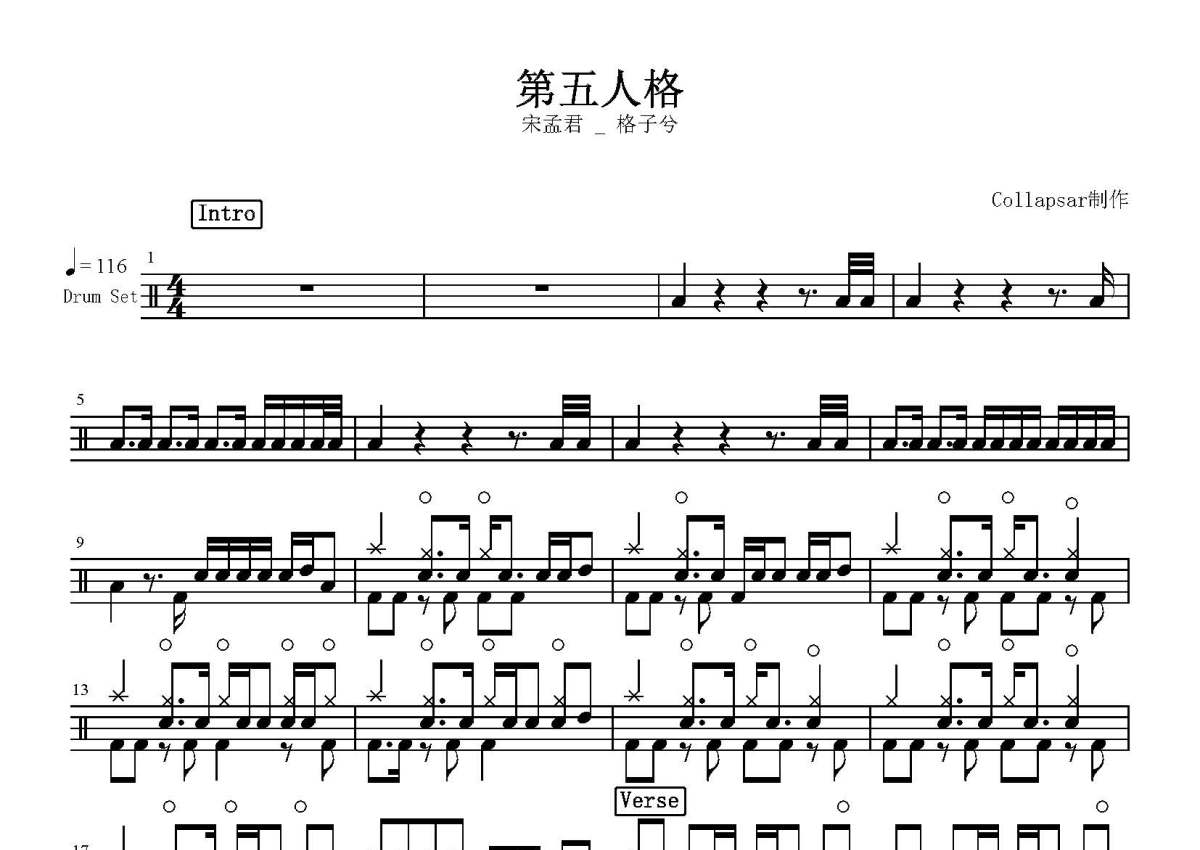 宋孟君/格子兮《第五人格》鼓谱 - 架子鼓谱