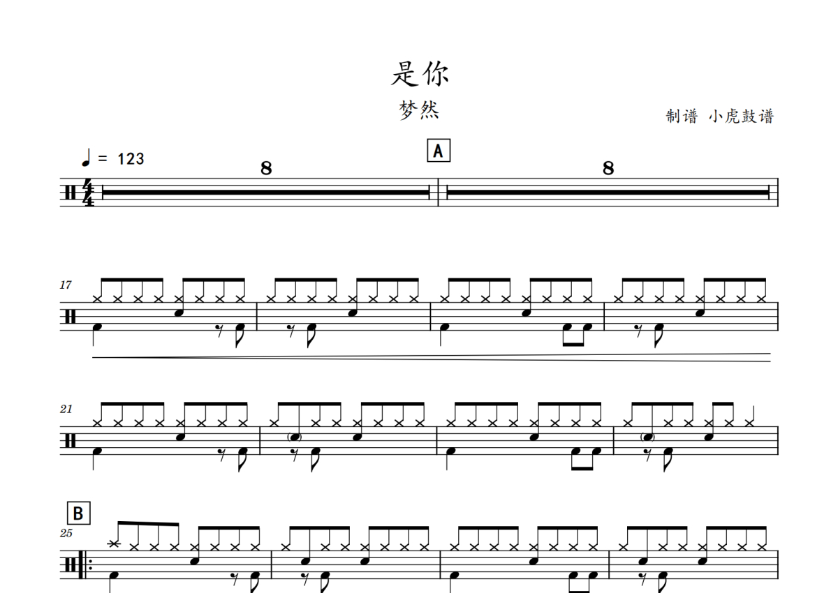 梦然《是你》鼓谱 - 架子鼓谱